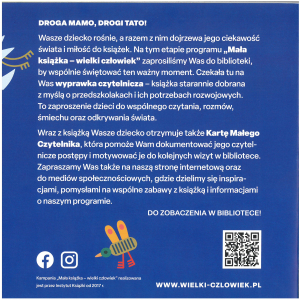 Program „Mała książka – wielki człowiek” jest realizowany przez Instytut Książki ze środków Ministra Kultury i Dziedzictwa Narodowego.