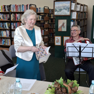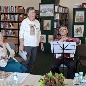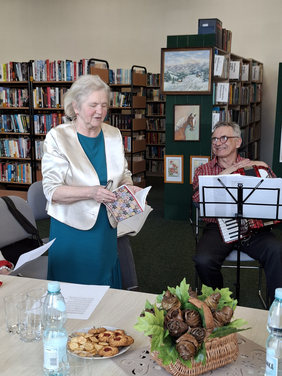 Wzruszające wiersze koleżanek przypomniały Ela Niewadzisz i Teresa Sobolewska. W dalszej części spotkania było lirycznie, radośnie i gwarnie. Teresa Kapturska wyśpiewała swoje wiersze o miłości, Barbara Wojtarek o świętym Franciszku, a Tadeusz Figarski o przysuskim targu. Wiersz Jacka Kwietnia usłyszeliśmy w kompozycji profesjonalnego zespołu na płycie. Cudowne utwory Marii Kwaśniak, Wiesławy Białek, Jadwigii Górnik, Teresy Sobolewskiej wybrzmiały między wspólnym śpiewem piosenek przy wtórze akordeonu Ryszarda Będkowskiego.